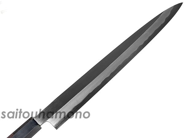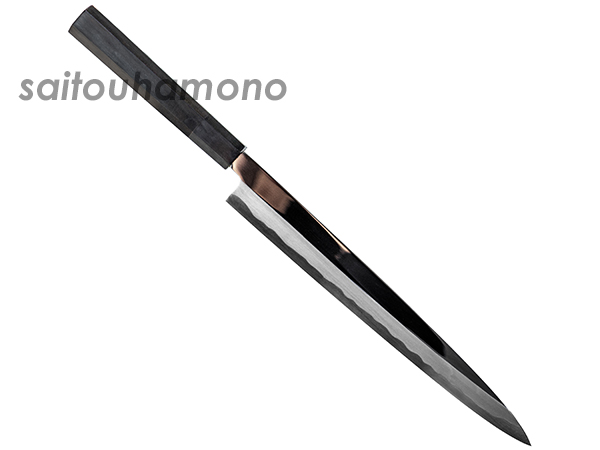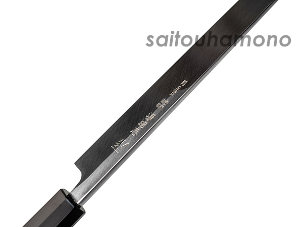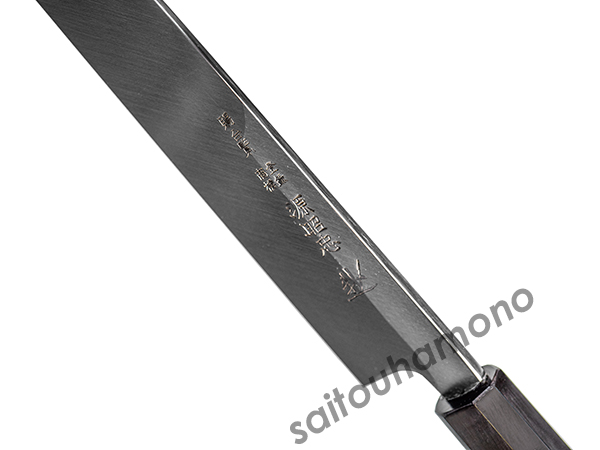 | 源昭忠 青鋼DX 切付柳刃300ミリ 表鏡面黒檀八角柄 121000円(税込) |